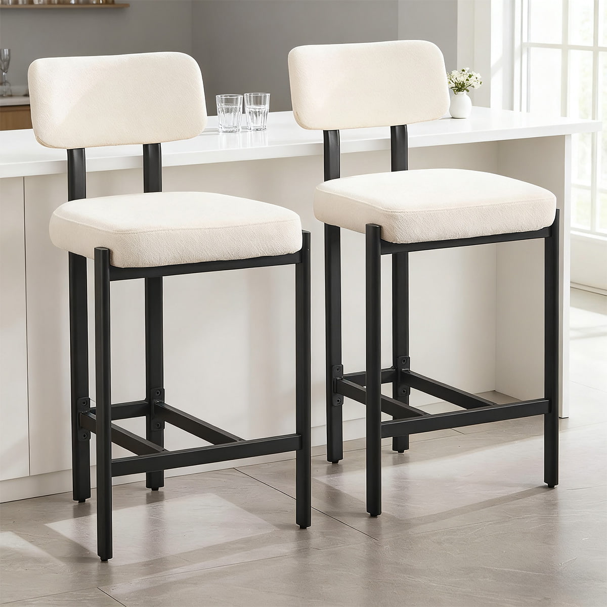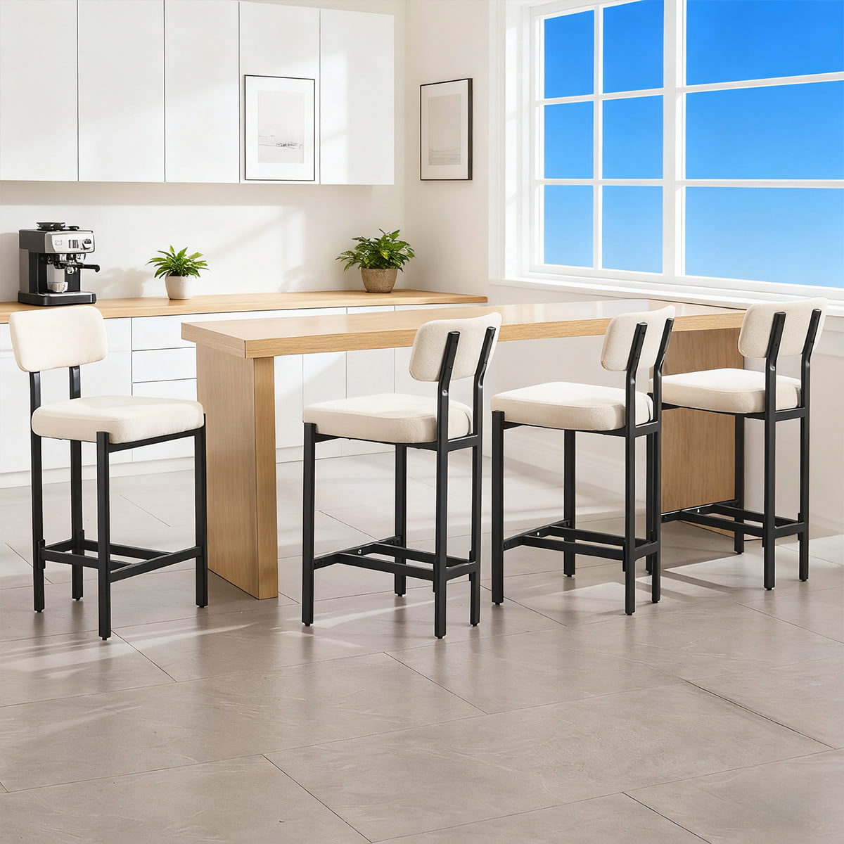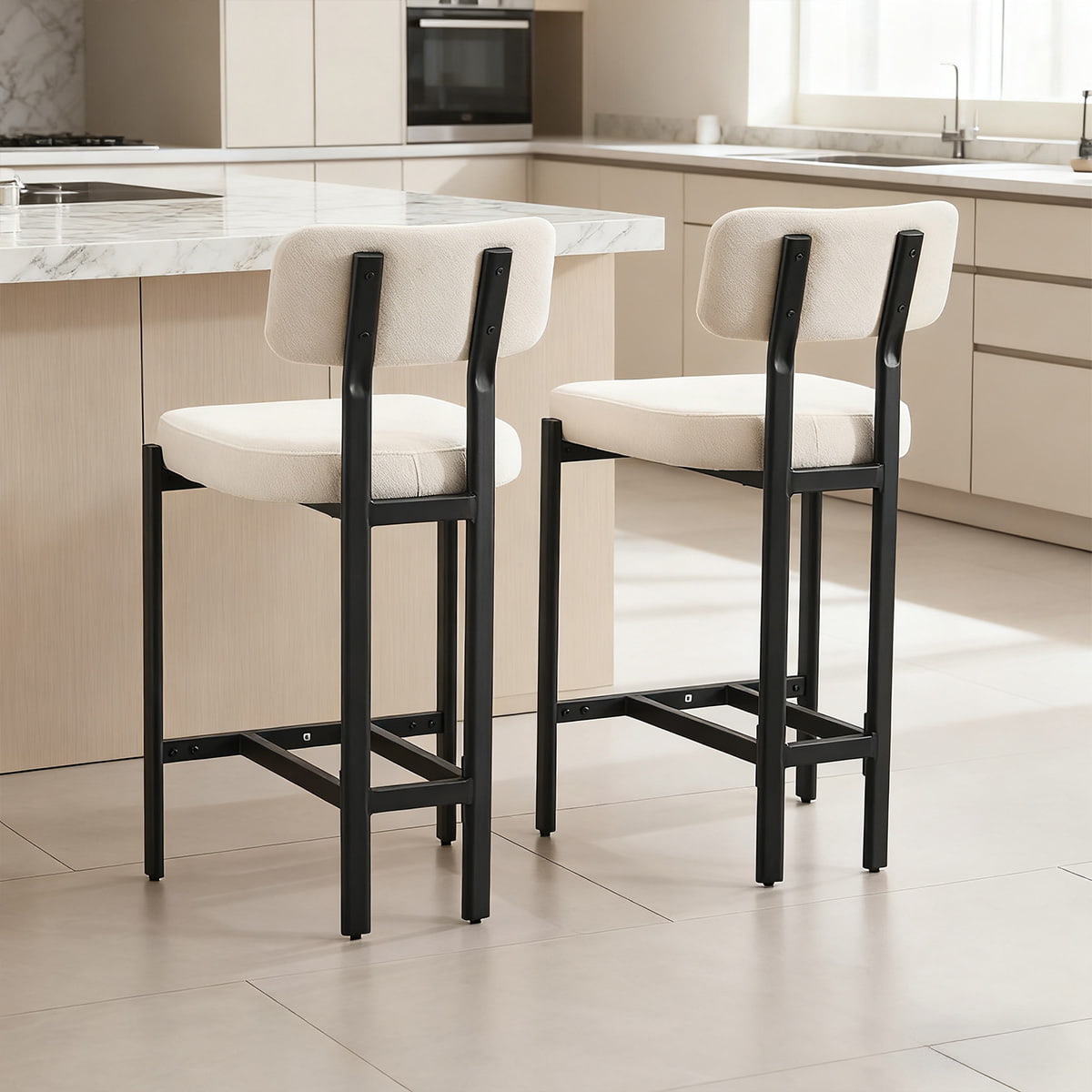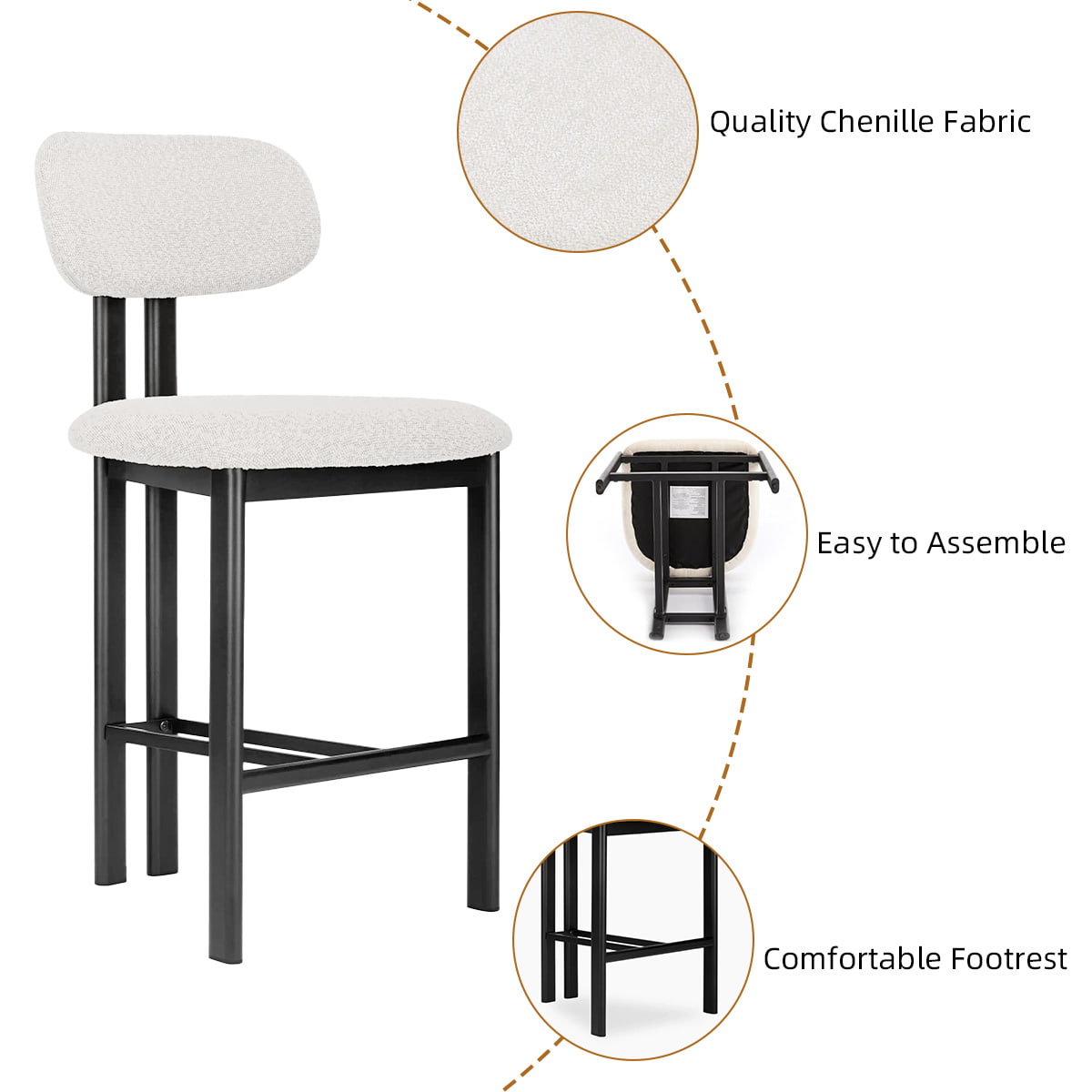 Sgabelli da bar moderni in ciniglia beige - Sedie da bar imbottite con schienale curvo con gambe in metallo e poggiapiedi per isola cucina, bar di casa o sala da pranzo