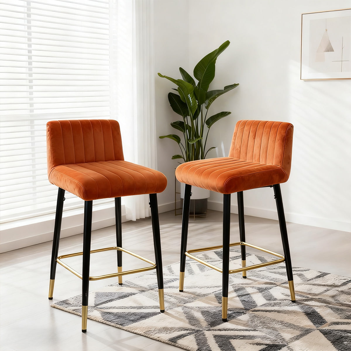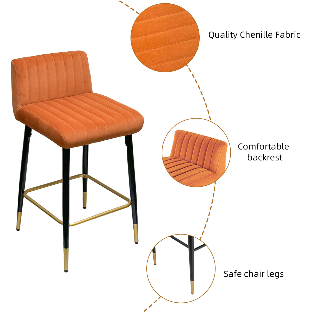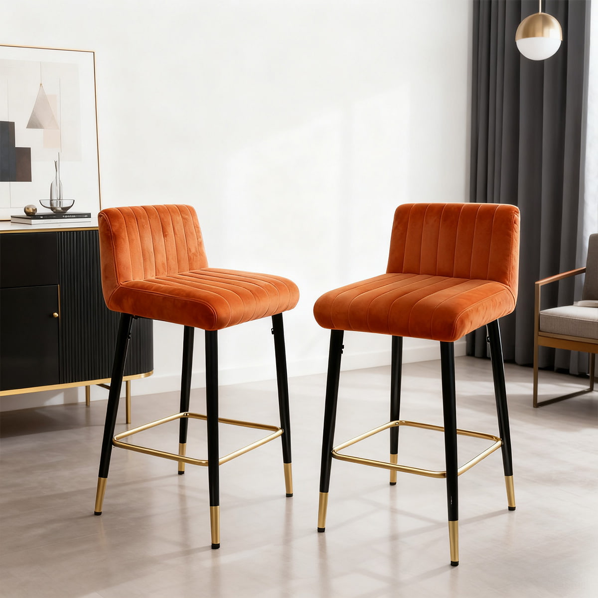 saperne di piùAggiungi un tocco di fascino contemporaneo alla tua casa con lo sgabello da bar girevole in velluto arancione ocra DUOMEI. Realizzato per offrire stile e comfort, questo sgabello presenta un morbido rivestimento in velluto con cuciture a canale verticale che offre una seduta invitante per qualsiasi spazio. La funzione girevole a 360° garantisce flessibilità, mentre la struttura in metallo nero con accenti dorati fornisce una base robusta e una finitura lussuosa.
