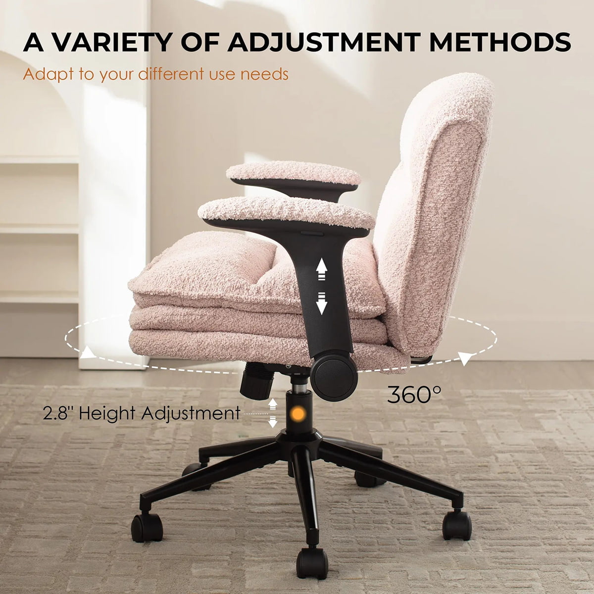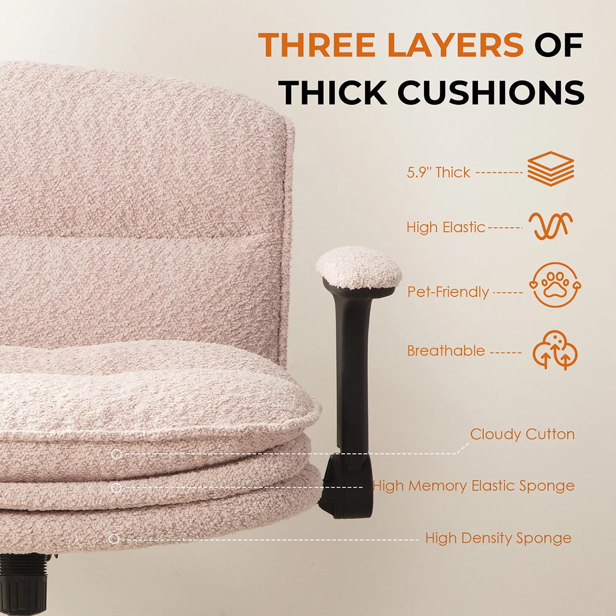 ② Sedia da scrivania ergonomica con gambe incrociate con braccioli regolabili, girevole a 360° e cuscini spessi — Sedia da ufficio Bouclé Home