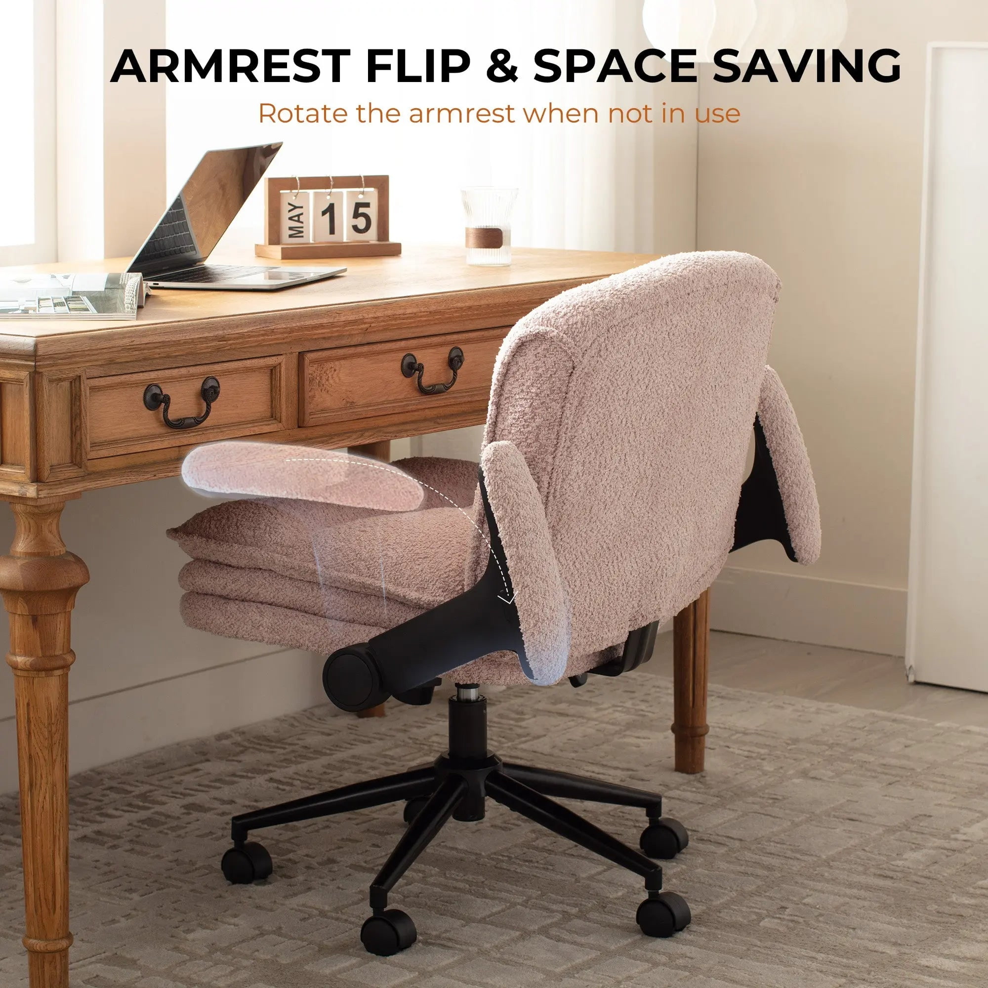 ① Sedia da ufficio Criss Cross con braccioli ribaltabili e cuscino a 3 strati - Sedia da scrivania ergonomica Bouclé con seduta ampia e ruote
