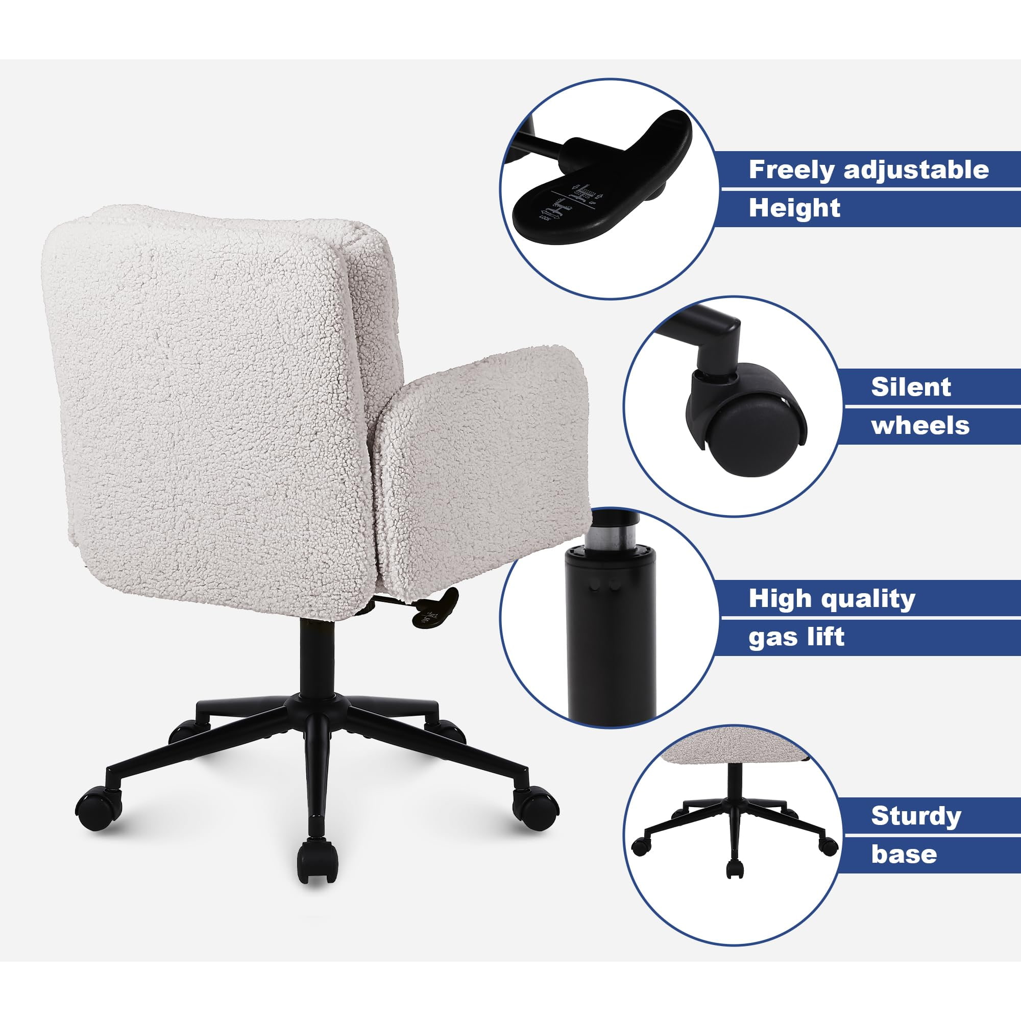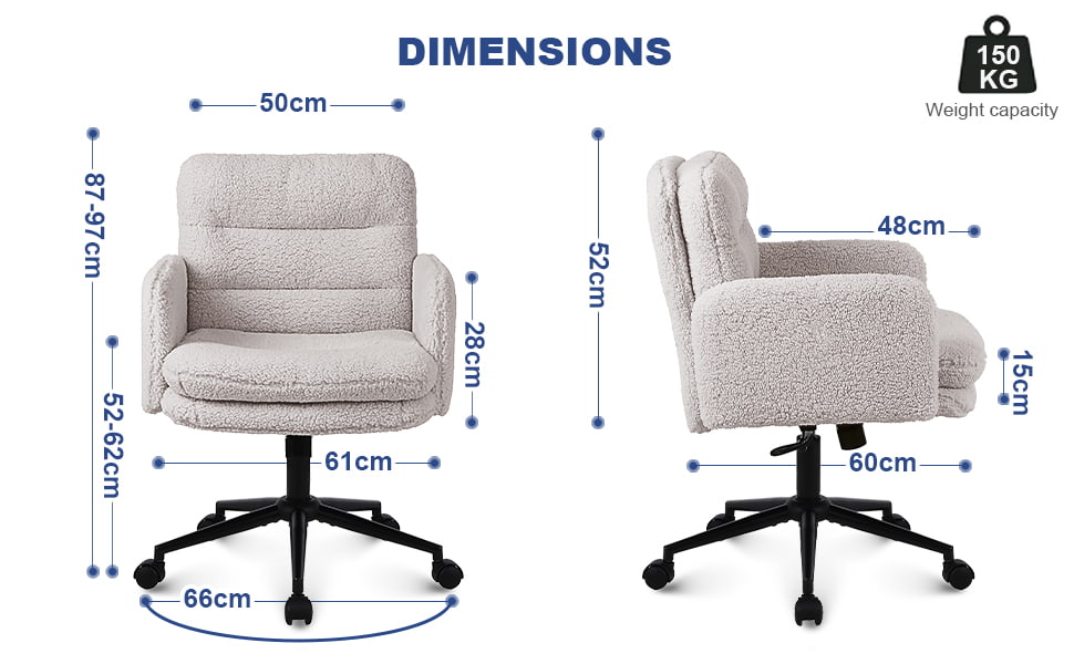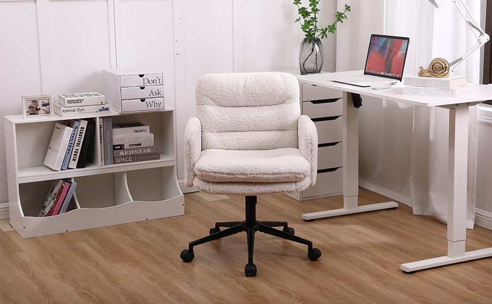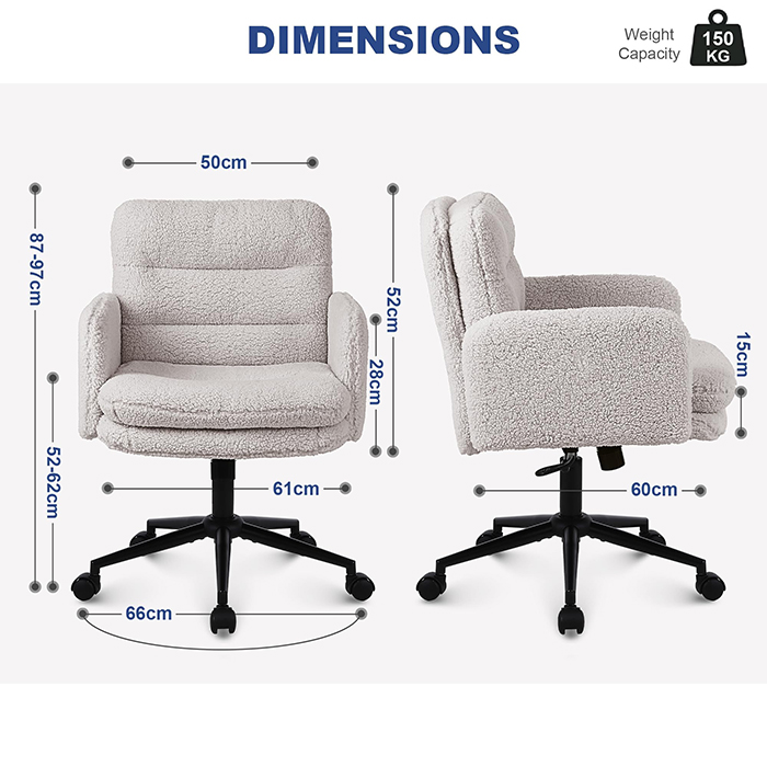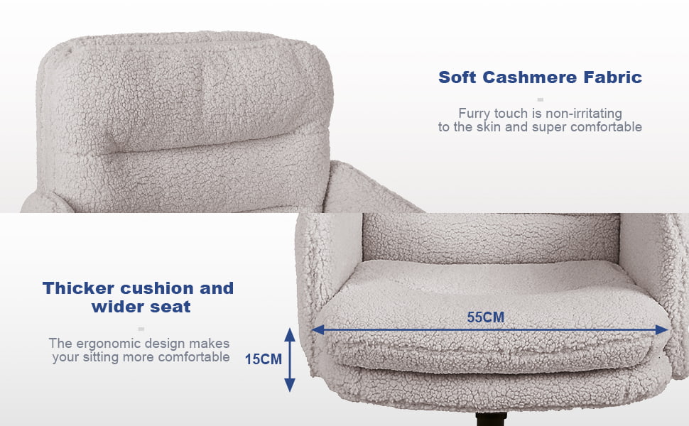 Questa sedia da ufficio in finto cashmere è progettata per gli acquirenti che cercano un equilibrio tra comfort, estetica e qualità di produzione affidabile. Rivestita in morbido tessuto finto cashmere delicato sulla pelle, la sedia è dotata di un cuscino ispessito ad alta densità da 15 cm che fornisce un supporto duraturo senza crollare, rendendola ideale per il lavoro prolungato, lo studio o l'uso in bagno. La struttura ergonomica del sedile, combinata con un movimento girevole fluido a 360 gradi, la regolazione dell'altezza e una delicata funzione di oscillazione, migliora il comfort di seduta quotidiano mantenendo un aspetto pulito e moderno adatto per uffici domestici, camere da letto e interni orientati allo stile di vita.