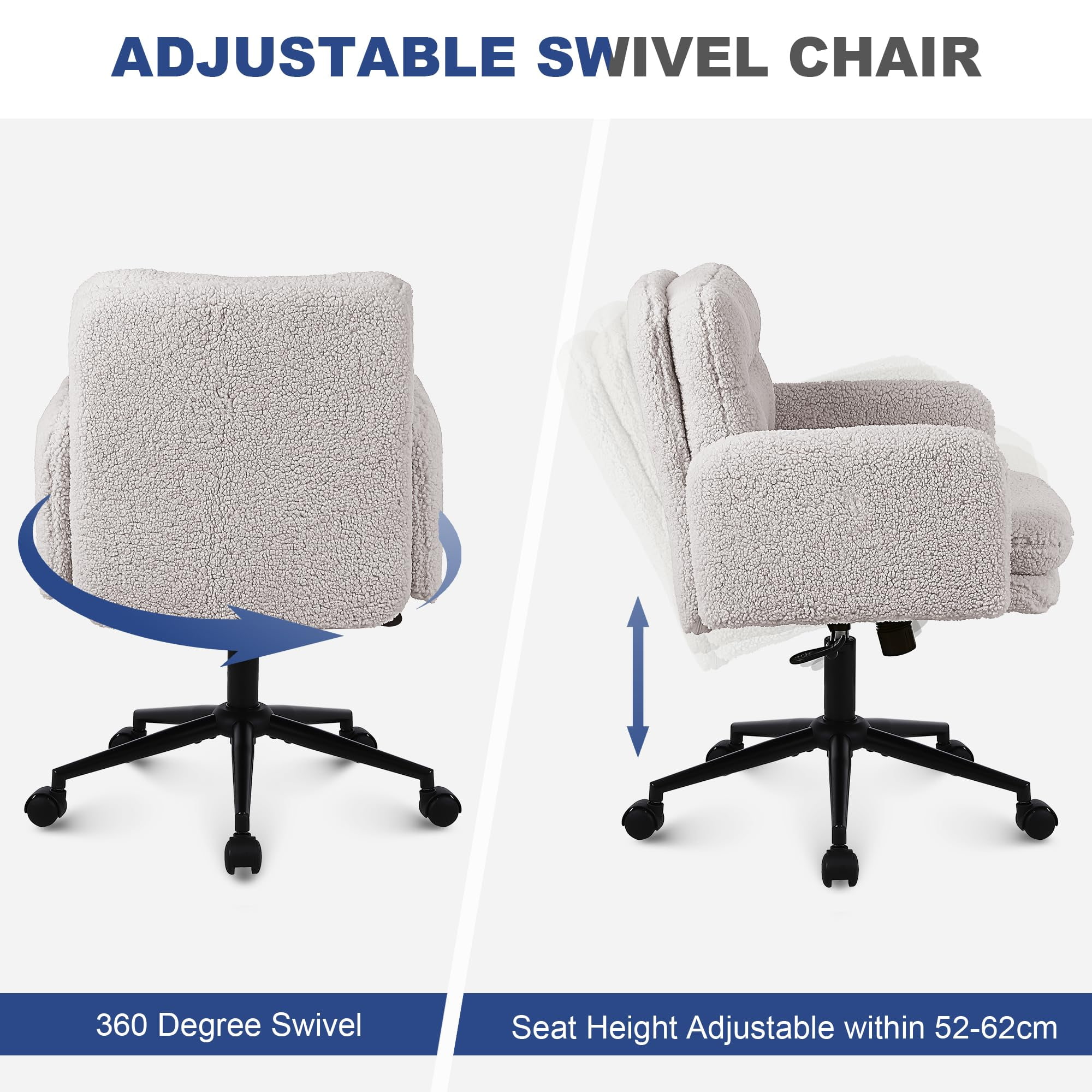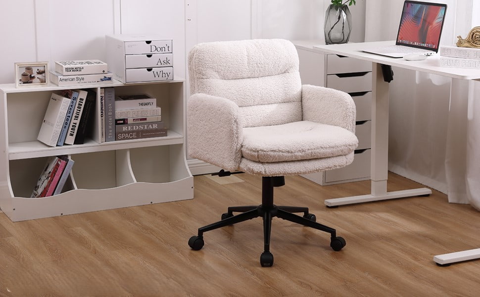 Sedia da ufficio regolabile in finto cashmere con funzione girevole e dondolo – Sedia da scrivania imbottita morbida per uso domestico e per il bagno